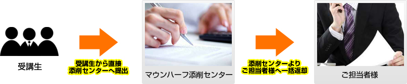 当社の通信講座を法人様で社内教育としてまとめて受講をお考えの方は受講生の方の添削問題の提出状況や、点数、修了証の発行など、ご担当者様にまとめてお知らせするシステムがございます。